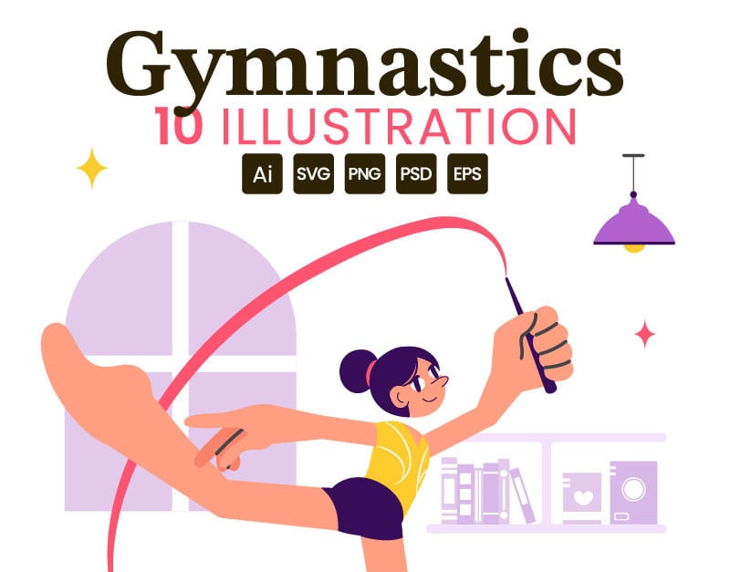 Rhythmic Gymnastics Illustration Featuring Professional Athletes Performing Artistic Acrobatic Moves, Showcasing Strength and Flexibility at Home Suitable for Poster, Web Banner, Brochure, Landing Page and Others Background Template Features: – Fully editable vector files, easy to edit the object, color and background – Include 100% vector Ai, Eps 10, SVG …