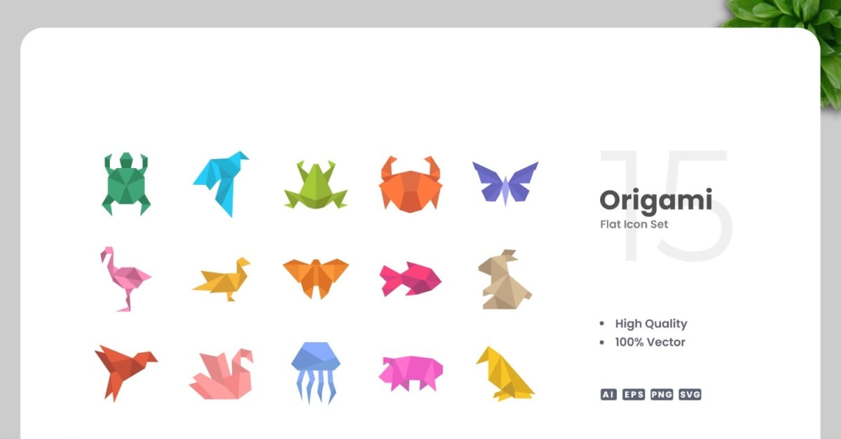 Set of 15 Origami flat icons | Simple and clean design, perfect for websites, mobile apps, books, social media, infographics, flyer, print, banners, posters and many more. To resize or change color you can easily edit on vector software like Adobe Illustrator and CorelDRAW. Features : High Quality Design100% Vector100% CustomizableEasy …