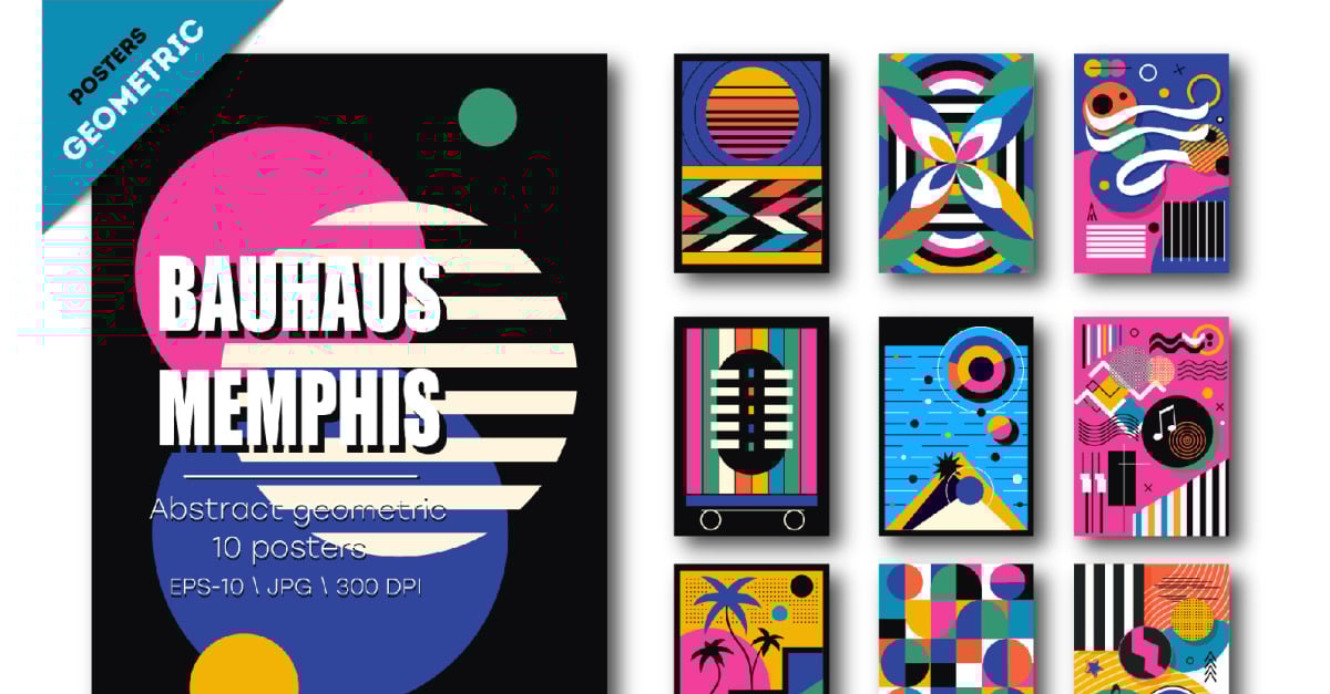 Abstract geometric Bauhaus, Memphis 02. 10 Posters.