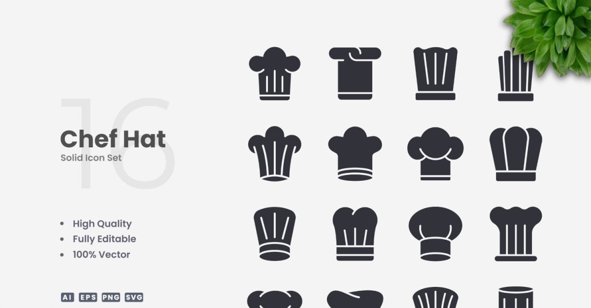 Set of 16 Chef Hat Solid Icons | Simple and clean design, perfect for websites, mobile apps, books, social media, infographics, flyer, print, banners, posters and many more. To resize or change color you can easily edit on vector software like Adobe Illustrator and CorelDRAW. Features : High Quality Design100% Vector100% …