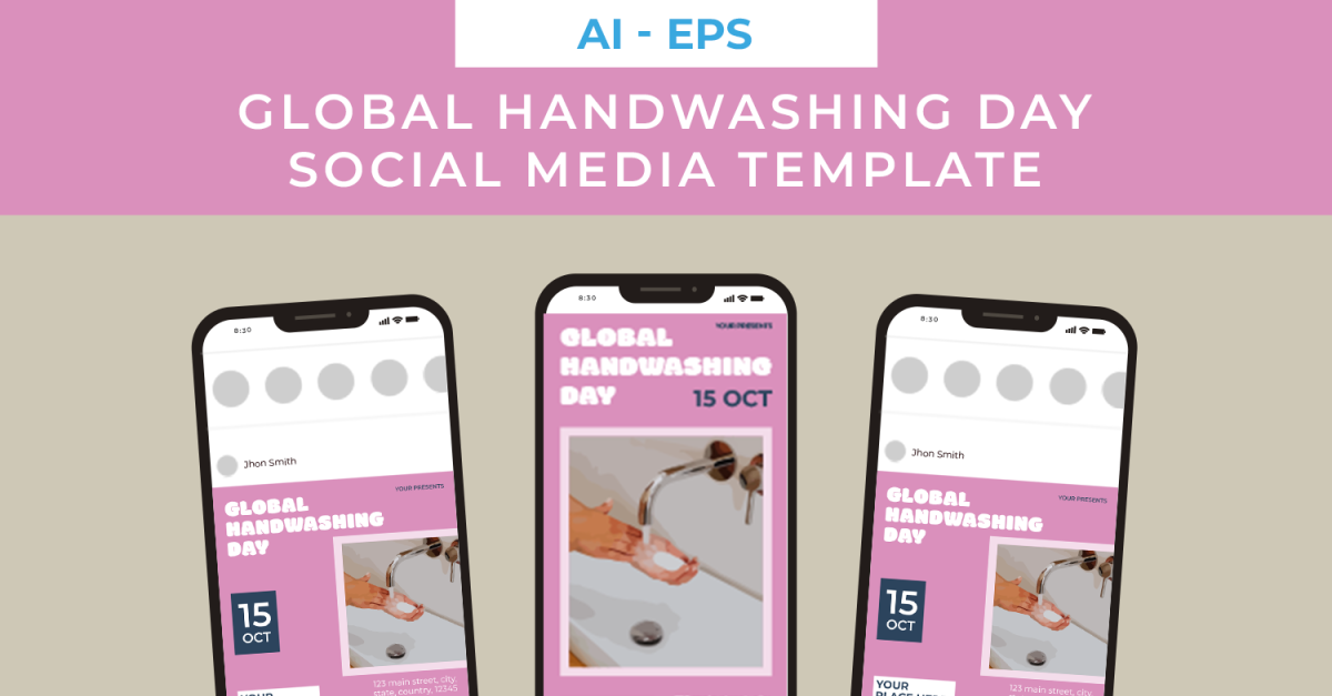 Global Handwashing Day Social Media Template It helps you, Social Media, design it in a short time! . A customization is easy with a well-organized file. Features: • Fully customizable and editable • Instagram Post 1080×1080 px (RGB 72DPI) • Instagram Story 1080×1920 px (RGB 72DPI) • Image Not Included …