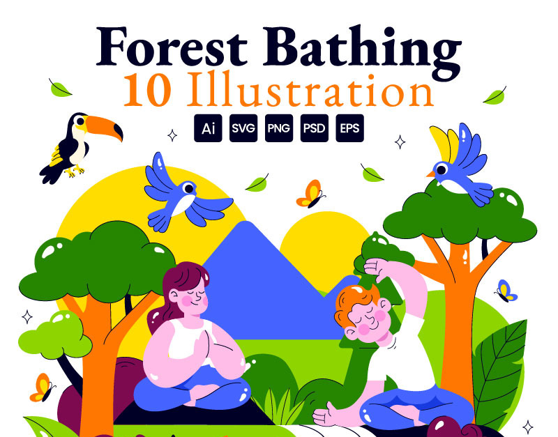 Forest Bathing Vector Illustration featuring a Person Surrounded by Tranquil Greenery, Wellness, Recreational Ecotherapy, and Connection with Nature Suitable for Poster, Web Banner, Brochure, Landing Page and Others Background Template Features: – Fully editable vector files, easy to edit the object, color and background – Include 100% vector Ai, Eps …
