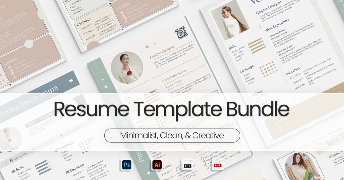 Elegant & Modern Resume Bundles Upgrade your job application toolkit with this curated bundle of elegant and modern resume templates—perfect for creative professionals such as graphic designers, fashion designers, and digital artists. Each template features Clean, minimalist layouts with modern typographySoft, coordinated color schemes for a refined aestheticSections for profile, …