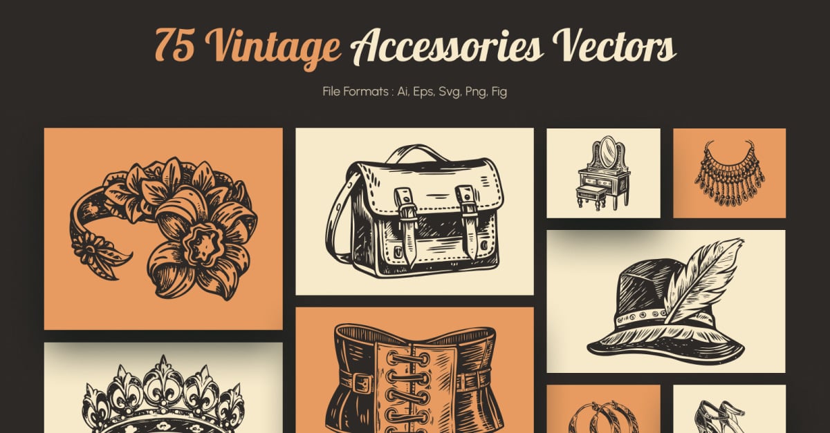 Step into a world of timeless style with this Vintage Accessories Illustration Set, a hand-crafted collection featuring classic handbags, chic hats, elegant scarves, retro sunglasses, and fashionable belts. Perfect for branding, fashion design, packaging, or digital content, this collection blends nostalgia with elegance. Whether you’re crafting a logo or jazzing …
