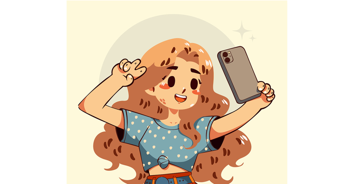 File Included : AI (CS6)EPS10Image 5000 x 5000 (px) **Explore our charming illustration of a cartoon girl holding a phone, capturing the perfect moment for a selfie. This fun and vibrant image will add a touch of whimsy to your project** **The illustration features a cartoon of a girl holding …