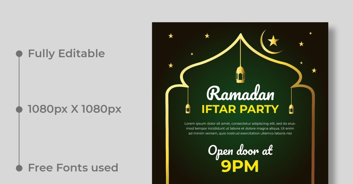 Celebrate the spirit of togetherness with this Ramadan Iftar Party Social Media Instagram Post Template, designed in Adobe Illustrator. Perfect for restaurants, cafes, or event organizers, this template helps you beautifully announce Iftar gatherings, buffet offers, or special Ramadan deals. The design features elegant Islamic patterns, festive motifs, and a …